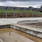 În ultima perioadă s-au efectuat lucrări la rețeaua electrică, au fost finalizate lucrările la pavaj, au fost montați stâlpii de iluminat. „Am montat copertina, iar în paralel am făcut rețeaua de curent pentru iluminatul la exterior. Am montat cablurile electrice de jur împrejur, am montat stâlpii, am realizat conectarea la rețeaua de apă a comunei, am turnat pista de beton“, a dezvăluit ing. Stănicescu, dirigintele de șantier.
